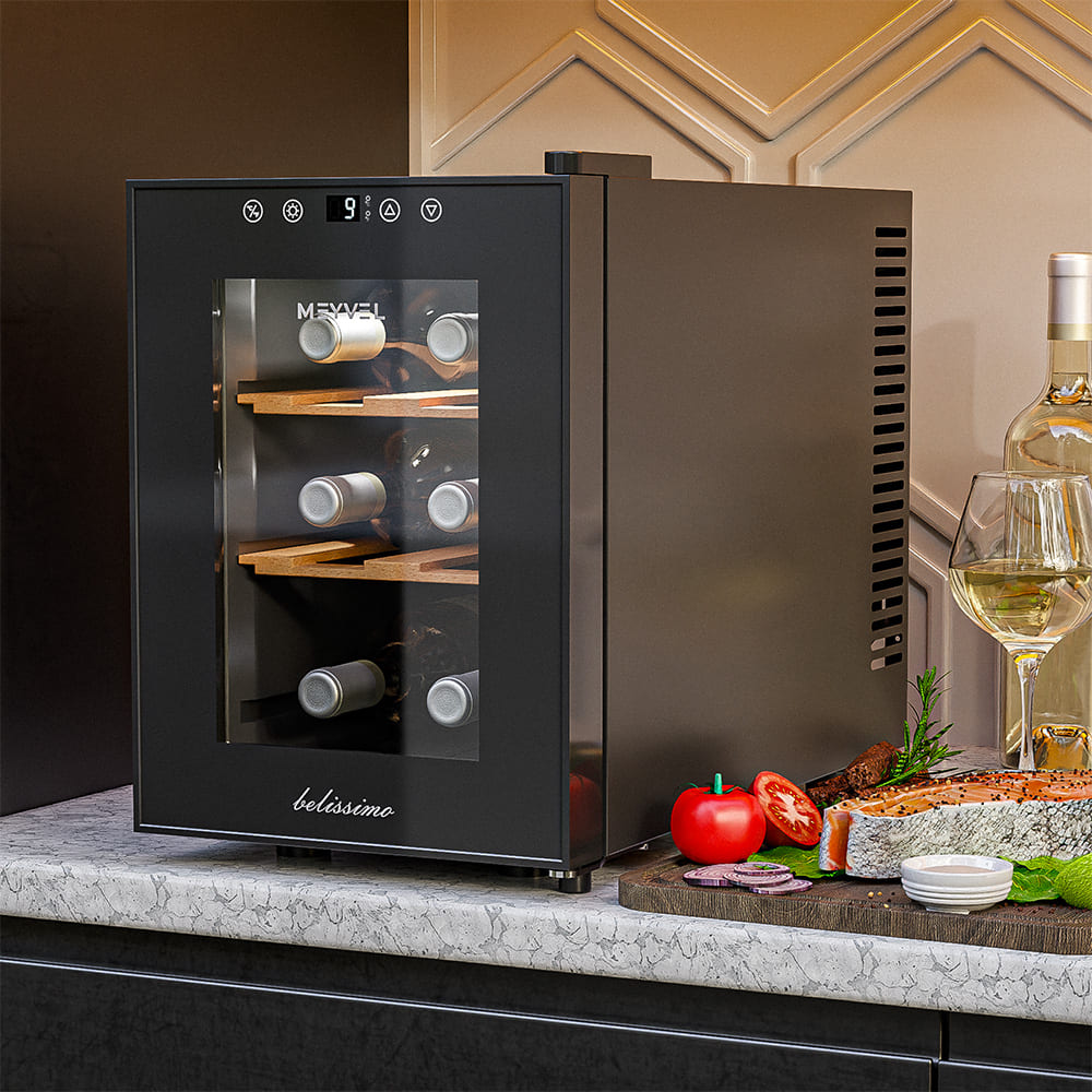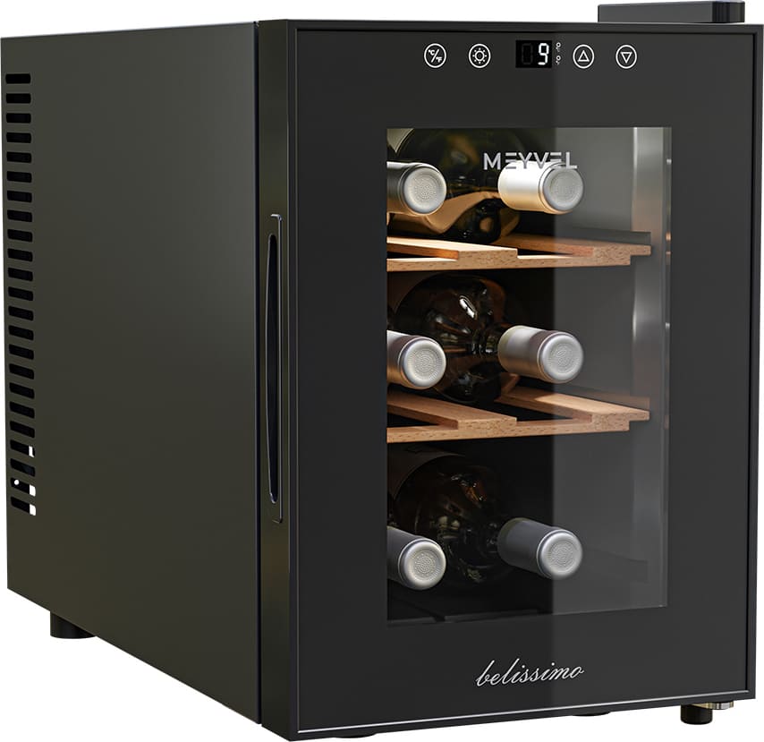 Винный холодильник Meyvel MV06-TBF1-Next имеет одну температурную зону, в которой можно разместить бутылки и единовременно выставить только одну комбинацию настроек. Он устанавливается отдельно, что удобно, если у вас есть специальное помещение — кладовая, погреб и т.д. Благодаря компактным размерам данная модель — отличный выбор для офиса, гостиничного номера. Количество бутылок, которое можно разместить с учетом полной комплектации и из расчета объема бутылки 0,75 л, — 6 шт.