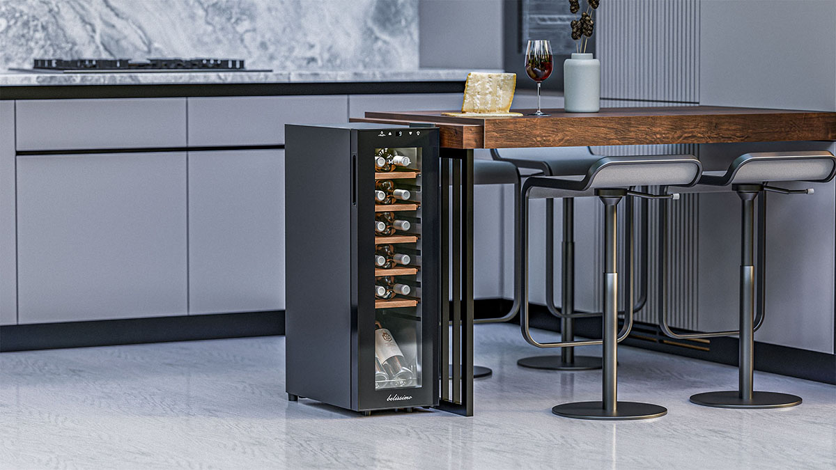Частичное встраивание отдельно стоящих винных шкафов в нишу — полезная опция, позволяющая сэкономить место в помещении и выбрать лучшее расположение прибора. Устанавливать в нишу или под столешницу рекомендуется только компрессорные модели — другие, например, термоэлектрические, не смогут достаточно вентилироваться при таком расположении. Если винный холодильник оснащен воздухозаборными решетками и радиатором охлаждения в нижней части, он может быть встроен без зазоров. Для удаления нагретого воздуха требуется свободный проход по всей длине холодильника от цоколя до верхней части.