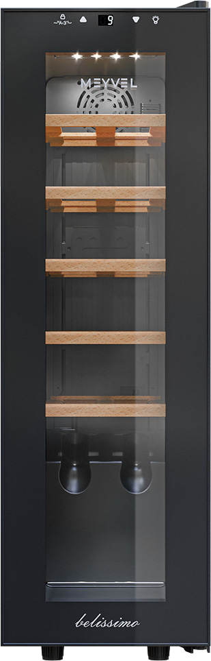Винный холодильник Meyvel MV12-CBF1 имеет одну температурную зону, в которой можно разместить бутылки и единовременно выставить только одну комбинацию настроек. Он устанавливается отдельно, что удобно, если у вас есть специальное помещение — кладовая, погреб и т.д. Благодаря компактным размерам данная модель — отличный выбор для офиса, гостиничного номера. Количество бутылок, которое можно разместить с учетом полной комплектации и из расчета объема бутылки 0,75 л, — 12 шт.