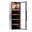 Внешний дизайн подчёркнут матовой стальной обшивкой и чёрной рамкой дверцы, что делает прибор солидным и нейтральным. Трёхкамерное стекло с тонировкой защищает содержимое от УФ-лучей и одновременно сохраняет визуальную лёгкость фасада. Дверной проём справа и габариты 154,6×49×57,5 см позволяют комфортно разместить агрегат в свободном пространстве или в нише близких размеров. Белая демонстрационная подсветка создаёт презентабельный вид бутылок и облегчает сортировку, не влияя на микроклимат внутри.