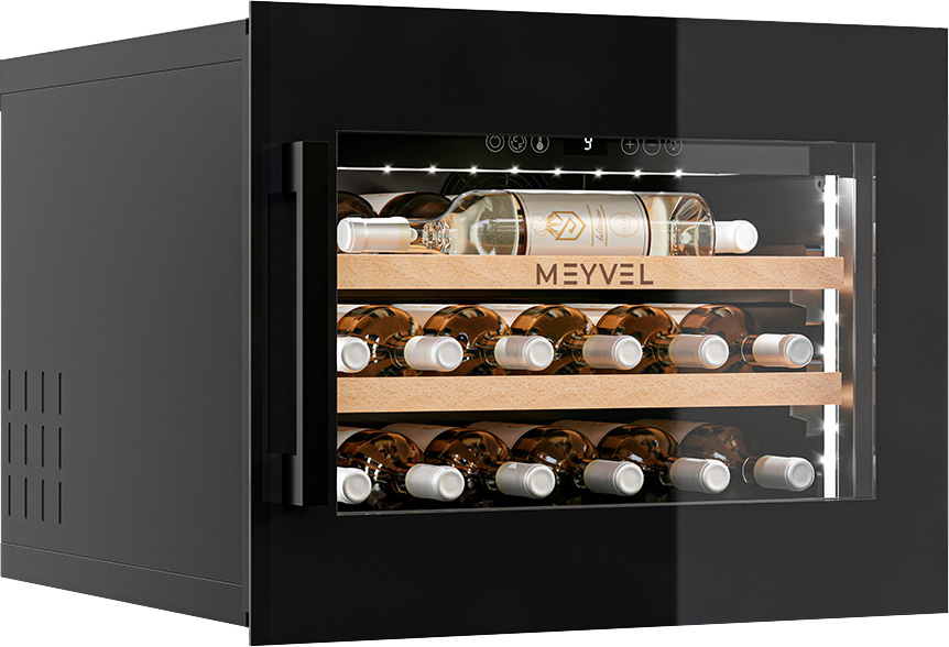 Предусмотренная система вентиляции винных шкафов Meyvel позволяет принудительно циркулировать потоки воздуха. Благодаря этому даже заполненных холодильник не образует зон с повышенной температурой, смешивая потоки и равномерно распределяя их по пространству.