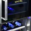 Кнопки для управления подсветкой выносятся на панель управления. Лампы синего, белого или голубого цветов могут располагаться в верхней части камеры или на боковых сторонах. Дополнительное освещение может устанавливаться в винных холодильниках с зоной для сервировки: она обеспечивает лучший обзор и доступ при подготовке вина к подаче.