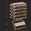 Полки в винных шкафах позволяют размещать бутылки для хранения в горизонтальном положении. Это необходимо, чтобы пробка постоянно смачивалась жидкостью и не пересыхала. Плотно закрытая пробка гарантирует, что внутрь бутылки не проникнет наружный воздух. Кислород, содержащийся в воздухе, может стать причиной ухудшения вкуса вина и даже его скисания. Кроме того, горизонтальное положение позволяет лучше оценить количество осадка. Материал изготовления полок выбирается, исходя из требований, предъявляемых к содержанию коллекции вин. Одним из основных требования является отсутствие или максимальное сокращение вибрации и хорошая фиксация бутылок на месте хранения. Даже если полка выдвигается, бутылки должны оставаться на своем месте. Второе требование исключает применение стеклянных полок, как в обычном холодильнике: на них почти невозможно зафиксировать бутылки.