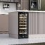 Шкаф можно использовать отдельно или встроить в нишу размерами 87×38.2×58 см, благодаря компактным габаритам и регулировке по высоте он легко подгоняется под мебель. Черного цвета отделка и затемнённое стекло создают спокойный акцент в барной зоне или кухонном блоке, не отвлекая внимания от посуды и столешниц. Сенсорная панель и цифровая индикация делают эксплуатацию понятной даже при частом использовании, а память сохраняет выбранные параметры после отключений.