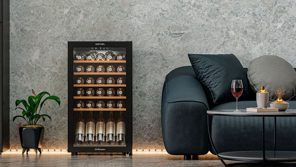 Винный холодильник Meyvel MV33-KBF1 имеет одну температурную зону, в которой можно разместить бутылки и единовременно выставить только одну комбинацию настроек. Он устанавливается отдельно, что удобно, если у вас есть специальное помещение — кладовая, погреб и т.д. Благодаря компактным размерам данная модель — отличный выбор для офиса, гостиничного номера. Количество бутылок, которое можно разместить с учетом полной комплектации и из расчета объема бутылки 0,75 л, — 30 шт.