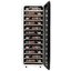 Дверца у большинства винных шкафов изготавливается из многослойного тонированного стекла. Такой материал, с одной стороны, позволяет оценивать коллекцию вин визуально, не открывая дверцу, в условиях стабильной температуры и влажности. С другой стороны, затемненное стекло с УФ-фильтром в виде напыления или специальной пленки надежно изолирует винные бутылки негативного воздействия ультрафиолетового излучения. Несколько слоев стекла обеспечивают при этом дополнительную защиту. Очень часто стекло в дверце заключается в рамку из дерева или металла. Натуральный или окрашенный металл или дерево не только способствуют прочности конструкции, но и превращают винный холодильник, особенно отдельно стоящий, в эффектный элемент обстановки.