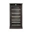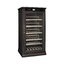 Стеклянная дверь — дополнительный изящный штрих к общему дизайну модели. Специальное покрытие защищает вино от влияния ультрафиолетовых лучей, которые проникают, если шкаф находится в солнечной комнате. Хранение становится еще безопаснее и герметичнее благодаря нескольким слоям стекол. Цвет корпуса — темный шоколад.