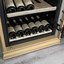 Стеклянная дверь — дополнительный изящный штрих к общему дизайну модели. Специальное покрытие защищает вино от влияния ультрафиолетовых лучей, которые проникают, если шкаф находится в солнечной комнате. Хранение становится еще безопаснее и герметичнее благодаря нескольким слоям стекол. Цвет корпуса — северный дуб.