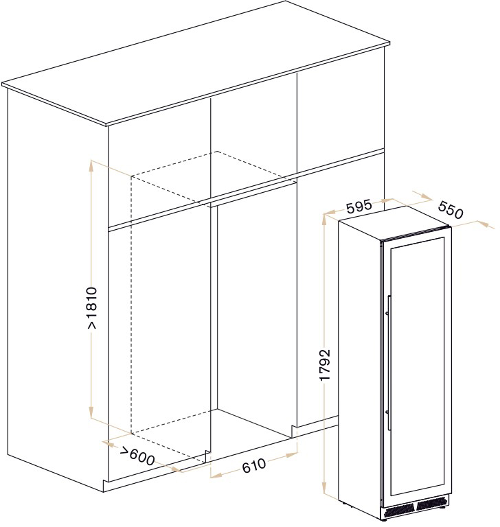 Частичное встраивание отдельно стоящих винных шкафов в нишу — полезная опция, позволяющая сэкономить место в помещении и выбрать лучшее расположение прибора. Устанавливать в нишу или под столешницу рекомендуется только компрессорные модели — другие, например, термоэлектрические, не смогут достаточно вентилироваться при таком расположении. Если винный холодильник оснащен воздухозаборными решетками и радиатором охлаждения в нижней части, он может быть встроен без зазоров. Для удаления нагретого воздуха требуется свободный проход по всей длине холодильника от цоколя до верхней части.