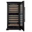 Стеклянная дверь — дополнительный изящный штрих к общему дизайну модели. Специальное покрытие защищает вино от влияния ультрафиолетовых лучей, которые проникают, если шкаф находится в солнечной комнате. Хранение становится еще безопаснее и герметичнее благодаря нескольким слоям стекол. Цвет корпуса — темный шоколад.