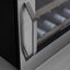 Дверца у большинства винных шкафов изготавливается из многослойного тонированного стекла. Такой материал, с одной стороны, позволяет оценивать коллекцию вин визуально, не открывая дверцу, в условиях стабильной температуры и влажности. С другой стороны, затемненное стекло с УФ-фильтром в виде напыления или специальной пленки надежно изолирует винные бутылки негативного воздействия ультрафиолетового излучения. Несколько слоев стекла обеспечивают при этом дополнительную защиту. Очень часто стекло в дверце заключается в рамку из дерева или металла. Натуральный или окрашенный металл или дерево не только способствуют прочности конструкции, но и превращают винный холодильник, особенно отдельно стоящий, в эффектный элемент обстановки.