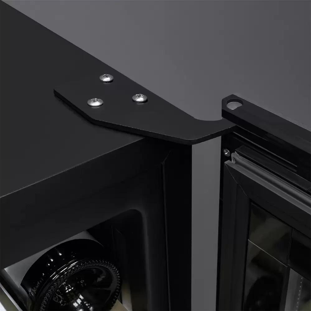 Необходима моделям со стеклянными дверьми. Стекло затемняется и благодаря тонкому покрытию с UV-фильтром не пропускает ультрафиолетовые лучи, которые неблагоприятно влияют на вино.