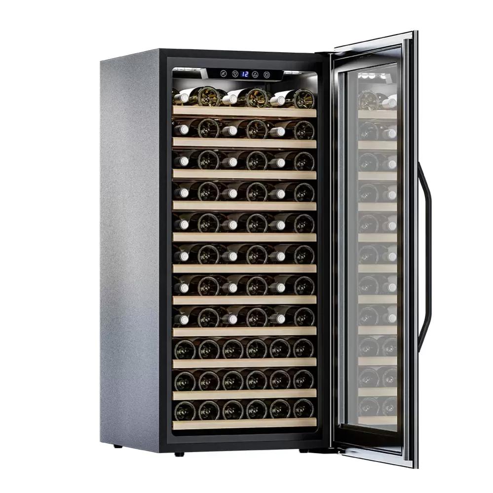Одна камера в технике такого типа встречается чаще всего, потому что в ней просто расположить все функциональные детали, и в итоге прибор действительно похож на обычный шкаф. Охлажденный воздух поступает внутрь благодаря компрессору. Размораживается автоматически, поэтому не нужно вручную удалять иней со стенок и поддерживать тем самым оптимальные условия. Общий диапазон температур, которые можно установить: 5-18 градусов. Средняя влажность воздуха (в процентах), которая поддерживается, чтобы пробки в бутылках не пересыхали: 60-80.