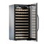 Электронное управление помогает быстро разобраться в том, как функционирует эта модель, и легко настроить все необходимые параметры. На дисплее отображаются данные, которые собирают датчики в камере. Лампочки, расположенные внутри, хорошо подсвечивают бутылки. Всего полок, на которых можно разместить коллекцию, в шкафу 11 шт.