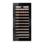 Стеклянная дверь — дополнительный изящный штрих к общему дизайну модели. Специальное покрытие защищает вино от влияния ультрафиолетовых лучей, которые проникают, если шкаф находится в солнечной комнате. Хранение становится еще безопаснее и герметичнее благодаря нескольким слоям стекол. Цвет корпуса — черный. Дверь можно перевесить на другую сторону, поэтому вариантов размещения его в доме становится больше.