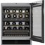 Встраиваемые холодильники для вина оснащаются специальной системой вентиляции: охлаждающая система у них находится в нижней части корпуса спереди. На такие устройства не навешивается мебельный фасад: дверца с затемненным стеклом остается на виду и открывается на достаточно широкий угол для свободного выдвижения деревянных полок.