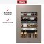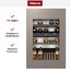 Стеклянная дверь — дополнительный изящный штрих к общему дизайну модели. Специальное покрытие защищает вино от влияния ультрафиолетовых лучей, которые проникают, если шкаф находится в солнечной комнате. Цвет корпуса — жемчужный. Дверь можно перевесить на другую сторону, поэтому вариантов размещения его в доме становится больше. Доводчик делает открытие и закрытие плавным.