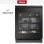 Внутри расположены четыре деревянные полки, три из которых выдвижные. Это облегчает доступ к бутылкам и минимизирует вибрации при извлечении. Светодиодная подсветка мягко освещает содержимое без избыточного нагрева, а сухая задняя стенка снижает риск конденсата. Угольный фильтр защищает от посторонних запахов и сохраняет нюансы аромата напитков.