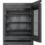 Корпус выполнен в цвете «черный обсидиан» и оснащен дверью в черной рамке и двойным остеклением. Благодаря этому прибор выглядит элегантно и сдержанно. Возможность перенавешивания двери упрощает установку при любой планировке помещения и разных вариантах размещения мебели. Конструкция позволяет встроить агрегат под столешницу или вплотную к шкафам.