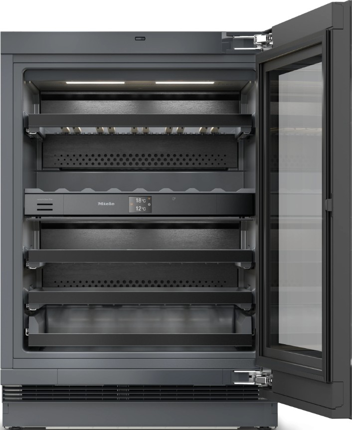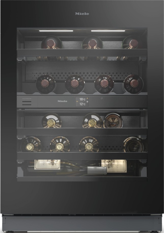 Винный шкаф Miele KWTUS 7196 E создан для ценителей вина и продуманного встраивания в кухонный гарнитур. Его элегантный корпус в цвете «черный обсидиан» и дверь со стеклопакетом в тонкой рамке под стеклом смотрятся сдержанно и дорого. Такое оформление легко вписывается в современный интерьер и подчеркивает коллекцию бутылок, не отвлекая внимание от общей планировки. Декоративные магнитные планки NoteBoard дают место для заметок и позволяют персонализировать фронт без ущерба внешнему виду.