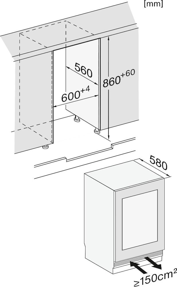 Высота встраиваемых винных шкафов может варьироваться примерно в таком же диапазоне. Стандартные размеры встраиваемых винных шкафов должна соответствовать габаритам мебели, так что высота их может быть несколько меньше, чем у отдельно стоящих моделей.