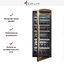Ширина винного шкафа, как и другие их габариты, обязательно учитывается при выборе модели для домашнего или профессионального использования. Встраиваемые и отдельно стоящие модели выпускаются в самом широком ассортименте, так что разброс значений максимально велик. Неизменным спросом пользуются винные шкафы стандартной ширины — от 40 до 80 см, в современном и классическом стиле. Для встраиваемых шкафов наиболее удобной является ширина 60 см, позволяющая устанавливать их в кухонную тумбу или колонну. Вместимость их может быть самой различной и зависит в большей степени от высоты прибора. Маленькие винные шкафы с размещением на столешнице или даже с креплением к стене, рассчитанные на хранение от одной до десяти бутылок, могут иметь минимальную ширину от 13 см. На полках у них обычно помещается не более 5 бутылок, и используются они для охлаждения вина перед подачей. Большие винные шкафы с несколькими камерами и температурными зонами для длительного хранения и созревания разных сортов вина могут иметь ширину до 180 см, а максимальное значение этого параметра может составить 300 см. Как правило, это отдельно стоящие модели в деревянном корпусе с камерами side-by-side.