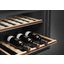 Встраиваемые холодильники для вина оснащаются специальной системой вентиляции: охлаждающая система у них находится в нижней части корпуса спереди. На такие устройства не навешивается мебельный фасад: дверца с затемненным стеклом остается на виду и открывается на достаточно широкий угол для свободного выдвижения деревянных полок.