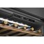 Встраиваемые холодильники для вина оснащаются специальной системой вентиляции: охлаждающая система у них находится в нижней части корпуса спереди. На такие устройства не навешивается мебельный фасад: дверца с затемненным стеклом остается на виду и открывается на достаточно широкий угол для свободного выдвижения деревянных полок.