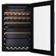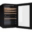 Этот шкаф рассчитан на 44 бутылки по 0,75 л и предлагает общий объем 140 литров, из которых 117 литров полезного пространства. Четыре деревянные полки расположены так, чтобы минимизировать вибрации и не повреждать этикетки, при этом все полки регулируются по высоте. Внутреннее светодиодное освещение равномерно подсвечивает содержимое, не нагревая бутылки и не нарушая климат. Управление сенсорное с цифровым дисплеем позволяет точно задавать режимы и видеть текущую температуру одним касанием.