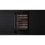 Встраиваемые холодильники для вина оснащаются специальной системой вентиляции: охлаждающая система у них находится в нижней части корпуса спереди. На такие устройства не навешивается мебельный фасад: дверца с затемненным стеклом остается на виду и открывается на достаточно широкий угол для свободного выдвижения деревянных полок.