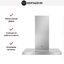 Для удобства пользователя следует выбирать вытяжку так, чтобы глубина даже самого большого купола не превышала глубину столешницы. У большинства современных купольных моделей глубина точно равна ширине, поскольку и стандартные варочные поверхности чаще всего имеют квадратную форму. Это значит, что вытяжка должна располагаться точно над поверхностью плиты, так, чтобы их оси совпадали. Стандартные размеры глубины таким образом могут составлять 30, 45, 50, 60, 80, 90, 100, 120 см.