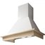 Еще один универсальный цвет — белый, он особенно хорошо подходит для небольших кухонь, так как зрительно способен расширить пространство. На белом фона меньше заметны капли воды и даже частицы жира. В классическом или античном белом выполняются купольные и каминные вытяжки, угловые и встраиваемые модели. Светлые кремовые тона, оттенок слоновой кости — наиболее распространенный вариант для больших вытяжек с окантовкой из натурального дерева.
