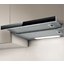 В этой модели есть три режима скорости работы, что позволяет выбирать удобный режим очистки воздуха. Вытяжка работает в режиме отвода внутренней рециркуляции: загрязненный поток втягивается вентилятором, после чего вновь возвращается через верхнюю решетку уже очищенным от масла и нагара. Размер воздуховода составляет 120 мм, а уровень шума не превышает 63 Дб на максимальной скорости. Электронная панель оборудована кнопочными элементами управления, расположенными по бокам корпуса вытяжки.