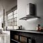 Необычный дизайн вытяжки с поверхностью под состаренный графит станет акцентным элементом в стилизованном интерьерном решении. Нестандартная форма, скругленные углы и наклон основания выделяют модель среди других подобных вариантов. За вытяжкой легко ухаживать, благодаря мощному мотору на корпусе не появляется липкий слой от жировых отложений. Своевременная влажная уборка убережет прибор от любого загрязнения. Управление элегантно спрятано за сенсорами. Такой вид кнопок предпочтителен за счет гармоничной интеграции в дизайн: они не выпирают над поверхностью и смотрятся минималистично.