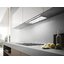 Вытяжки, встраиваемые в столешницу — эффективная инновация, которая подойдет для установки в кухне любой площади. Такие вытяжки размещаются за варочной поверхностью или рядом с ней. В отключенном состоянии всасывающая панель находится под столешницей, но после включения одной или нескольких конфорок она автоматически выдвигается при помощи специального лифтового механизма. Загрязненный воздух улавливается, не успевая распространиться по помещению. Когда вытяжка убрана, на виду остается только сенсорная панель управления. Недостатком подобных моделей является только сравнительно высокая цена.