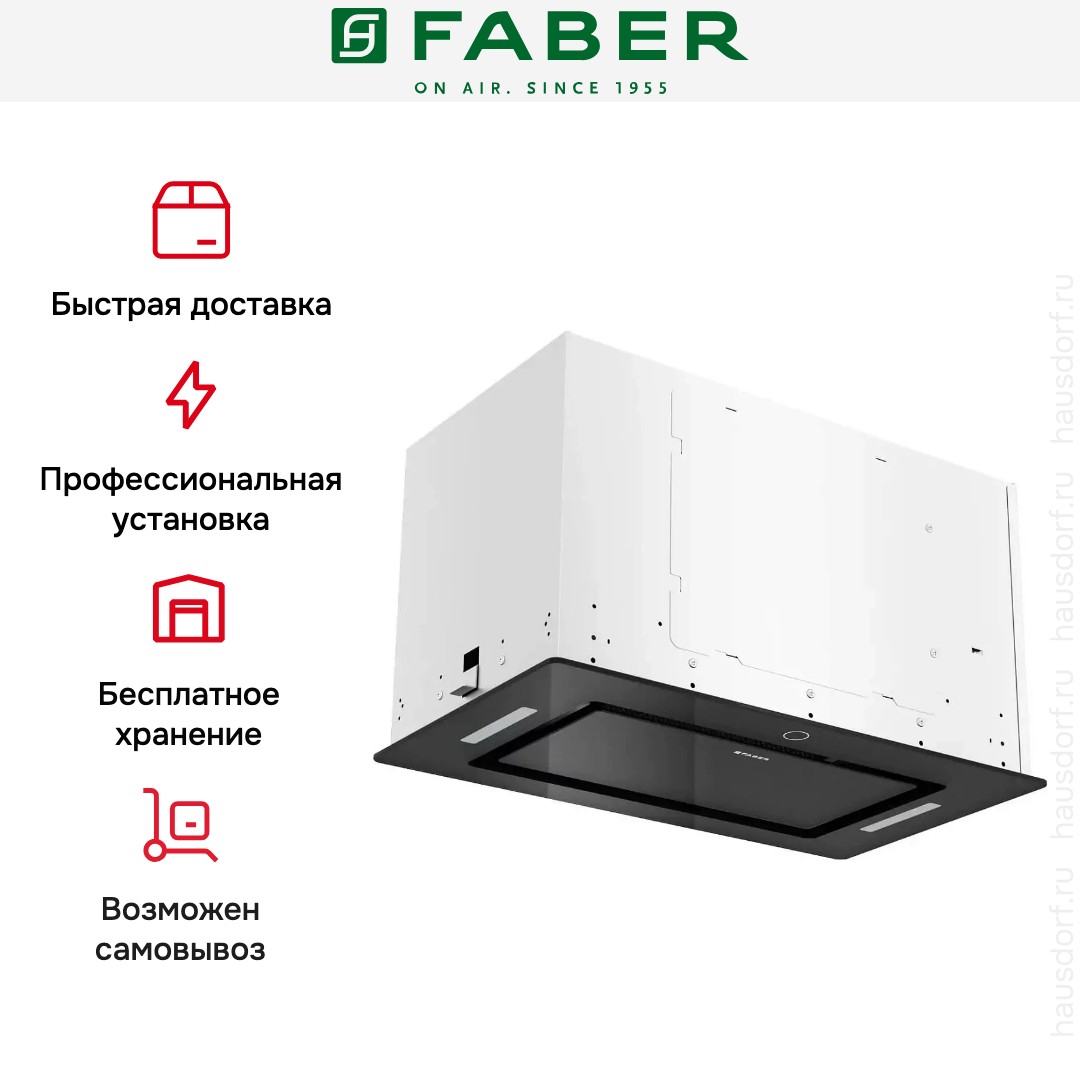 Итальянская компания Faber завоевала мировую известность благодаря своим оригинальным и надежным вытяжкам. История бренда началась в 1955 году: инженер А. Галасси с партнерами основал компанию по производству изделий из пластика — самого модного в то время материала. Оригинальную вытяжку фирма представила в 1958 году — она получила название по наименованию пластмассы Plexiglas.