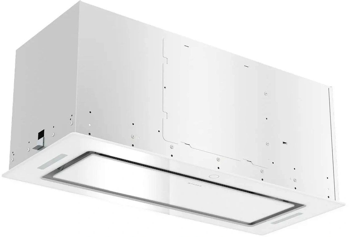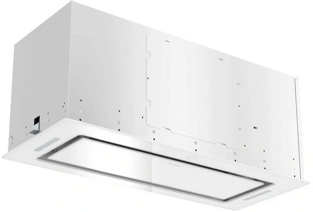 Вытяжка, встраиваемая в потолок, часто устанавливается над кухонным островом в просторной кухне и отличается достаточно высокой мощностью: она может работать как в режиме рециркуляции, так и в режиме отвода, так как воздуховод также скрыт в потолке. Вытяжки могут монтироваться в подвесной потолок либо устанавливаться в специальные многоярусные конструкции из гипсокартона непосредственно во время ремонта кухни. Для управления ими используется пульт ДУ.