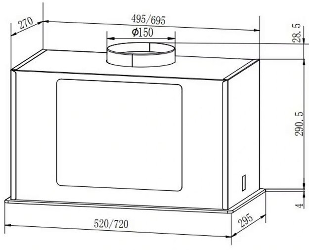 У многих встраиваемых моделей глубина может регулироваться, а рабочая всасывающая поверхность — увеличиваться благодаря выдвижному козырьку, но габариты корпуса такой вытяжки должны соответствовать размерам подвесного шкафа. Выбирать основные размеры вытяжки с соблюдением всех требований эффективности и безопасности работы следует также не в ущерб общему дизайну помещения.
