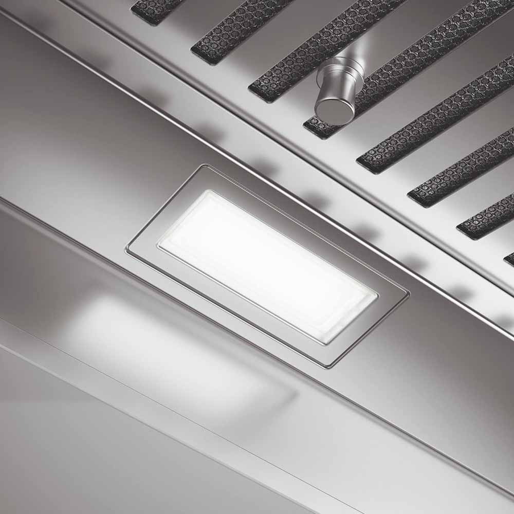 Встроенное освещение — функция, которая присутствует практически во всех современных вытяжках. Центрального освещения часто недостаточно для хорошего обзора рабочей зоны, особенно если над ней установлен подвесной шкаф. Интегрированные в вытяжку лампы позволяют готовить с комфортом, не напрягая зрение, их можно включать независимо от использования самой вытяжки.