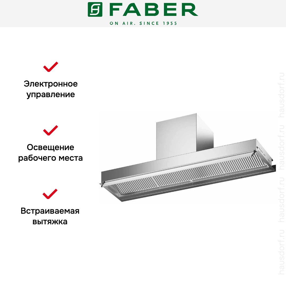 Итальянская компания Faber завоевала мировую известность благодаря своим оригинальным и надежным вытяжкам. История бренда началась в 1955 году: инженер А. Галасси с партнерами основал компанию по производству изделий из пластика — самого модного в то время материала. Оригинальную вытяжку фирма представила в 1958 году — она получила название по наименованию пластмассы Plexiglas.