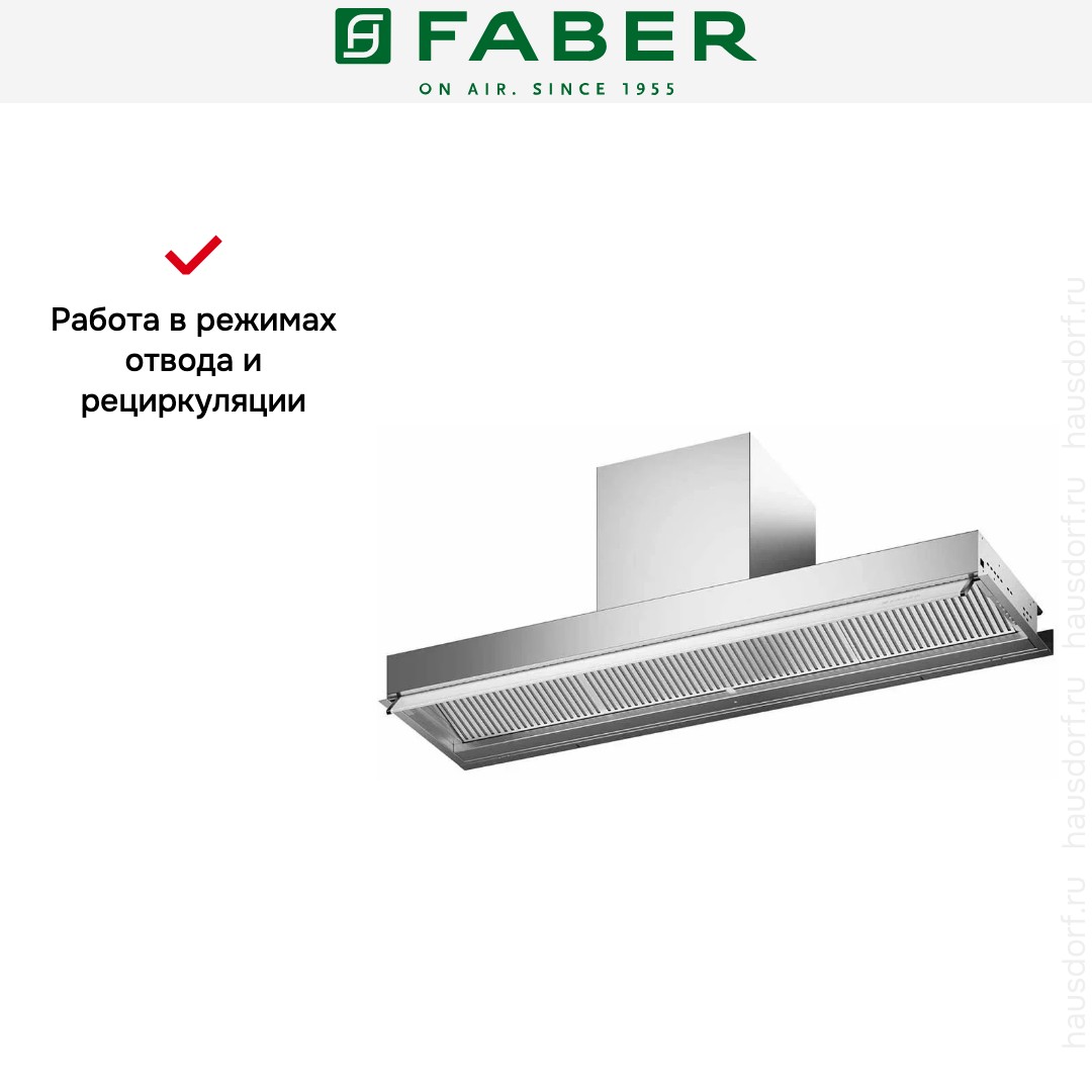 Несмотря на свои масштабы, вытяжка работает с низким уровнем шума, не нарушая комфорта даже при длительном использовании. Она идеально подходит для открытых кухонь-гостиных, островных зон или просторных загородных домов, где важны не только мощность и надёжность, но и визуальная гармония.