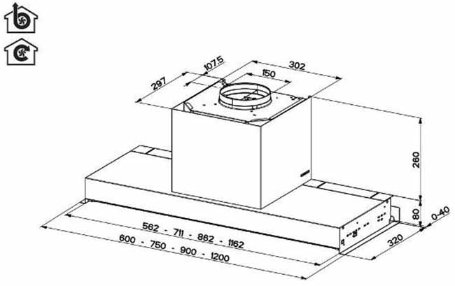 Ширина вытяжки — один из важнейших факторов, влияющих на выбор модели. Именно от правильно подобранной по ширине вытяжки зависит качество очистки воздуха и эффективность ликвидации всех загрязнений — частиц жира, продуктов горения, запахов, водяных паров.