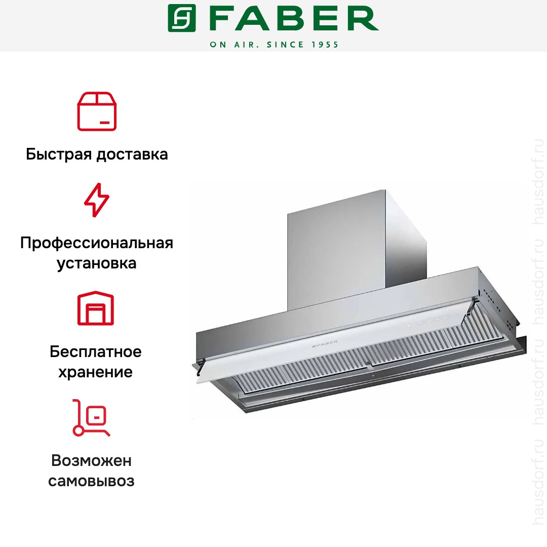Итальянская компания Faber завоевала мировую известность благодаря своим оригинальным и надежным вытяжкам. История бренда началась в 1955 году: инженер А. Галасси с партнерами основал компанию по производству изделий из пластика — самого модного в то время материала. Оригинальную вытяжку фирма представила в 1958 году — она получила название по наименованию пластмассы Plexiglas.