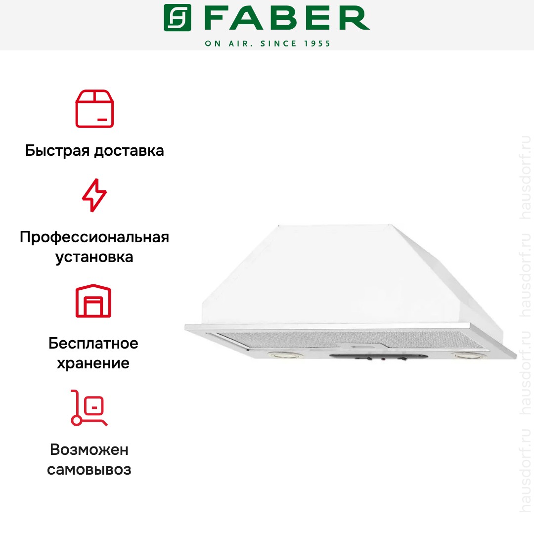 Итальянская компания Faber завоевала мировую известность благодаря своим оригинальным и надежным вытяжкам. История бренда началась в 1955 году: инженер А. Галасси с партнерами основал компанию по производству изделий из пластика — самого модного в то время материала. Оригинальную вытяжку фирма представила в 1958 году — она получила название по наименованию пластмассы Plexiglas.