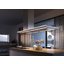 Воздух всасывается по периметру вытяжки через узкие щели. Он собирается в потоки, которые направляются прямо к фильтрам внутри, не рассеивается на кухне. Благодаря этой технологией вытяжку можно сделать компактнее и энергоэффективнее.