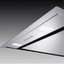 Воздух всасывается по периметру вытяжки через узкие щели. Он собирается в потоки, которые направляются прямо к фильтрам внутри, не рассеивается на кухне. Благодаря этой технологией вытяжку можно сделать компактнее и энергоэффективнее.