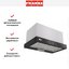 Дизайн ориентирован на встроенный монтаж в шкаф над плитой и экономию пространства. Компактные габариты 2949.531.5-47.8 см позволяют легко вписать корпус в стандартную кухонную нишу, а выдвижная стеклянная панель увеличивает зону захвата пара при необходимости. Черный стеклянный экран служит и эстетической, и практической функциям: он защищает внутренний механизм и удобно очищается. Небольшой вес в 7 кг облегчает установку и обслуживание.