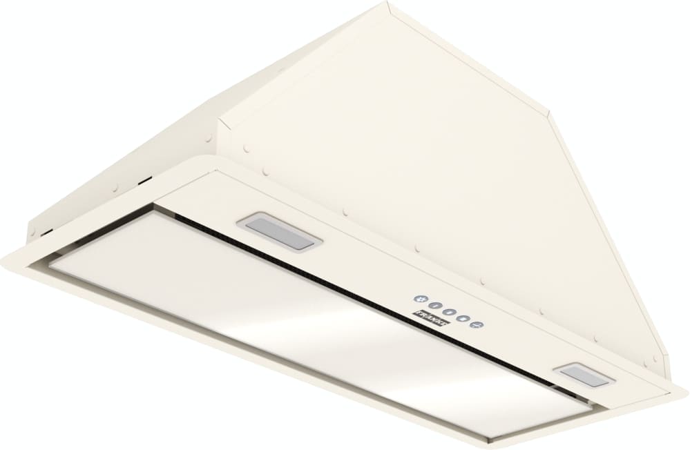 Вытяжка, встраиваемая в потолок, часто устанавливается над кухонным островом в просторной кухне и отличается достаточно высокой мощностью: она может работать как в режиме рециркуляции, так и в режиме отвода, так как воздуховод также скрыт в потолке. Вытяжки могут монтироваться в подвесной потолок либо устанавливаться в специальные многоярусные конструкции из гипсокартона непосредственно во время ремонта кухни. Для управления ими используется пульт ДУ.