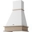 Еще один универсальный цвет — белый, он особенно хорошо подходит для небольших кухонь, так как зрительно способен расширить пространство. На белом фона меньше заметны капли воды и даже частицы жира. В классическом или античном белом выполняются купольные и каминные вытяжки, угловые и встраиваемые модели. Светлые кремовые тона, оттенок слоновой кости — наиболее распространенный вариант для больших вытяжек с окантовкой из натурального дерева.