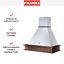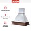 Особенно разнообразен ассортимент классических вытяжек с окантовкой из натурального дерева. Корпус таких моделей выполняется в спокойном белом или бежевом цвете, хорошо сочетающемся с оттенками натурального дерева — мореного дуба, бука, вишни или ореха. Нередко для окантовки используется окрашенное дерево в тон с цветом купола: особенно популярны оттенки ванили, бежевый и кремовый. Иногда дерево специально оставляют неокрашенным, чтобы пользователь мог подобрать оттенок самостоятельно.